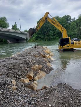 bauliche Umsetzung. Ein Bagger wird die Uferbefestigung lösen und es werden